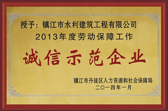公司被評為重合同守信用企業(yè)、江蘇省水利安全生產(chǎn)標(biāo)準(zhǔn)化二級單位、AAA級資信企業(yè)、誠信示范企業(yè)、全國工程建設(shè)用戶滿意施工企業(yè)。